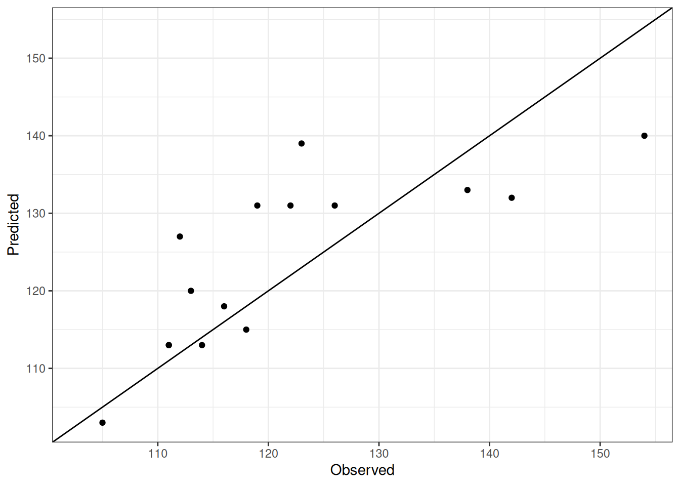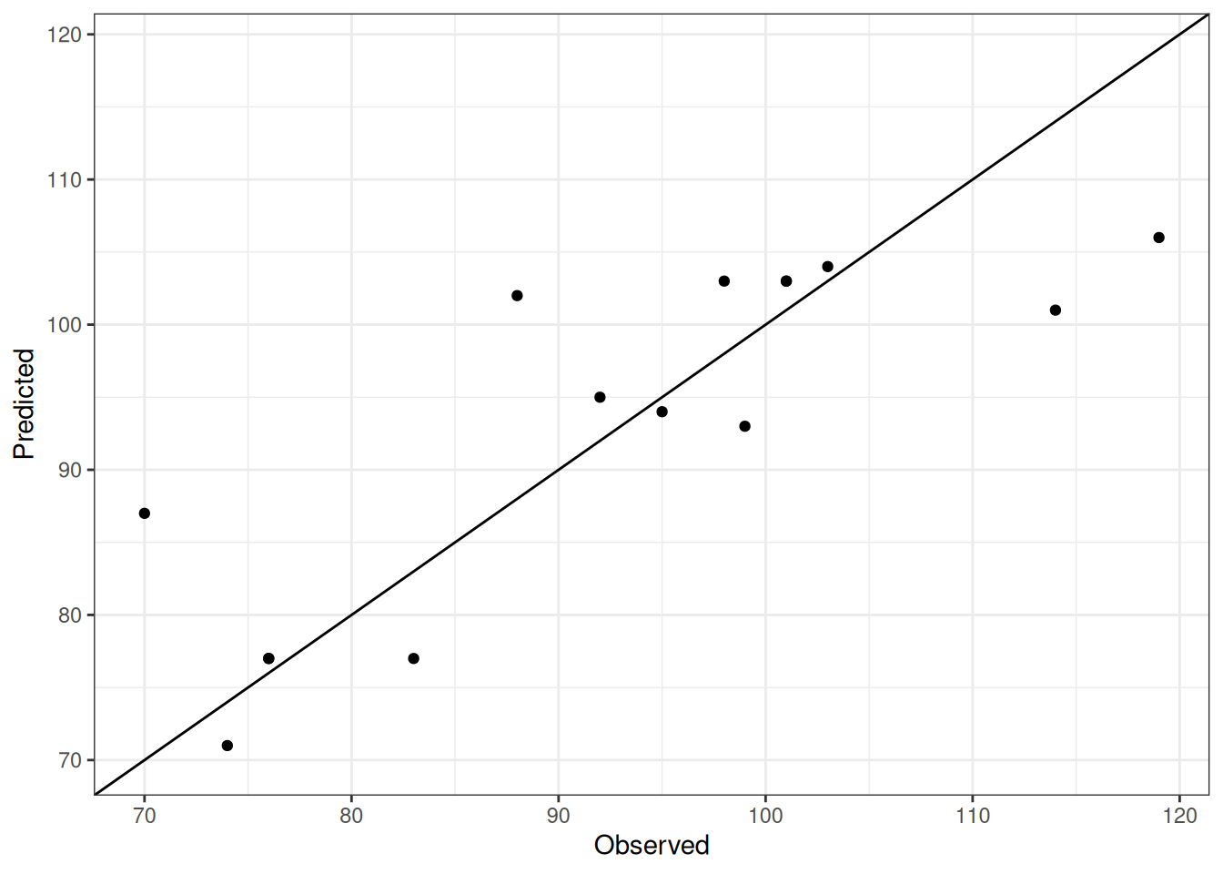 Comparison of observed and predicted values