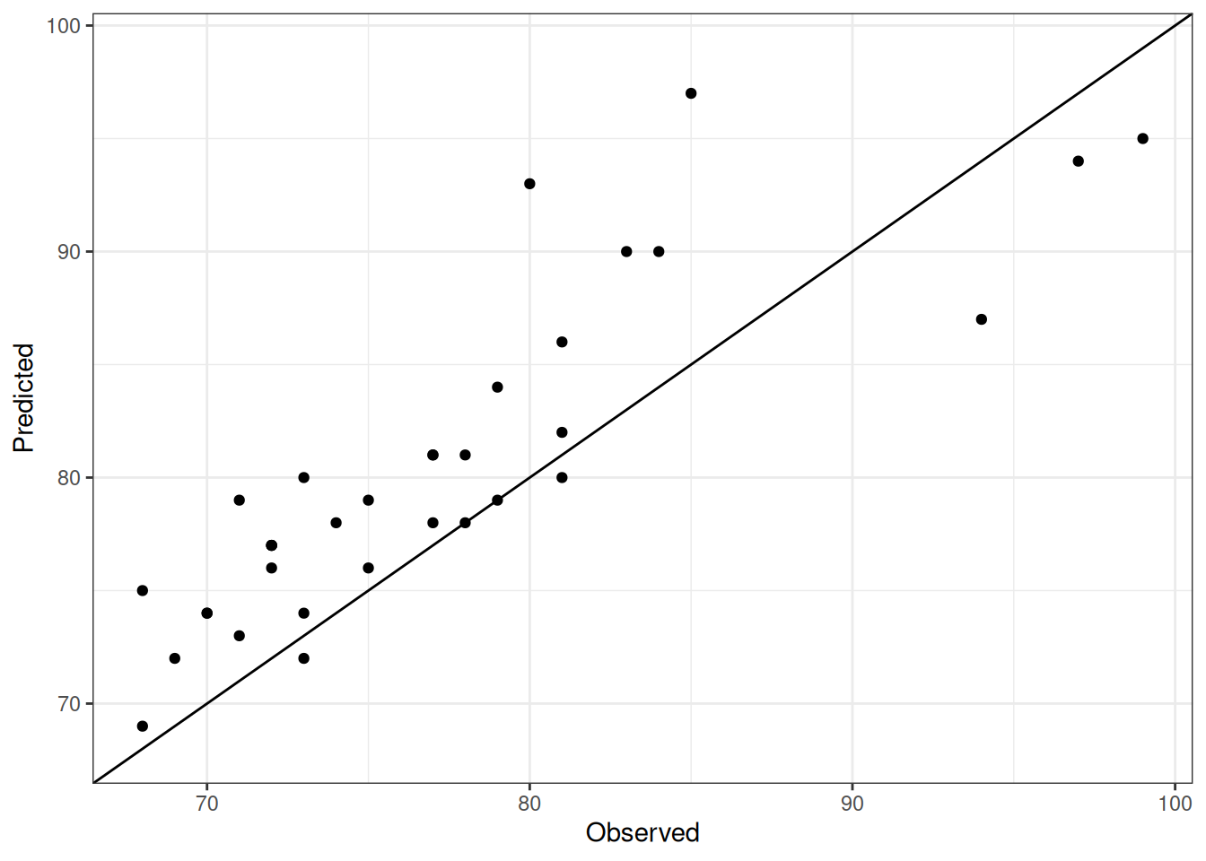 The range of observed and predicted values are estimated using data in this page, which may be misleading for the narrow ranges of observed and predicted values.