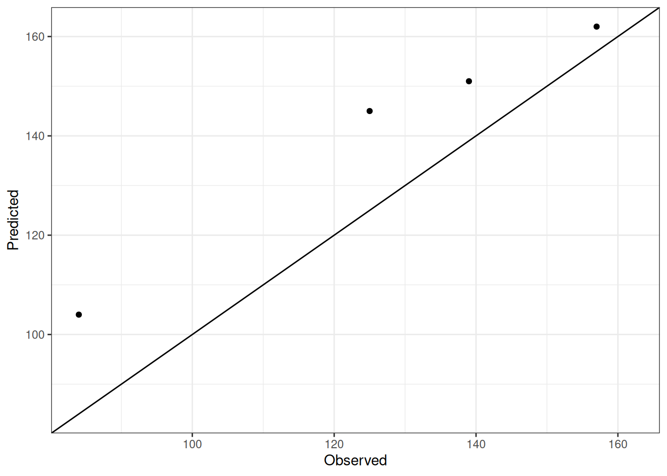 Comparison of observed and predicted values