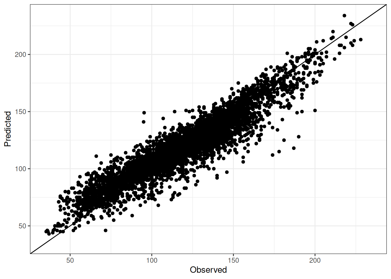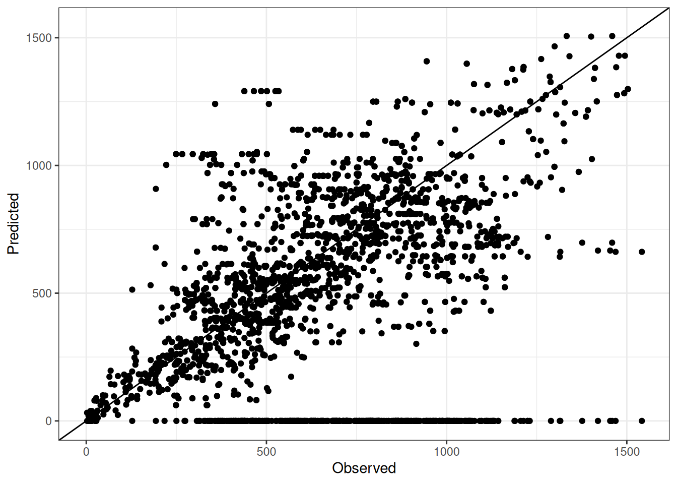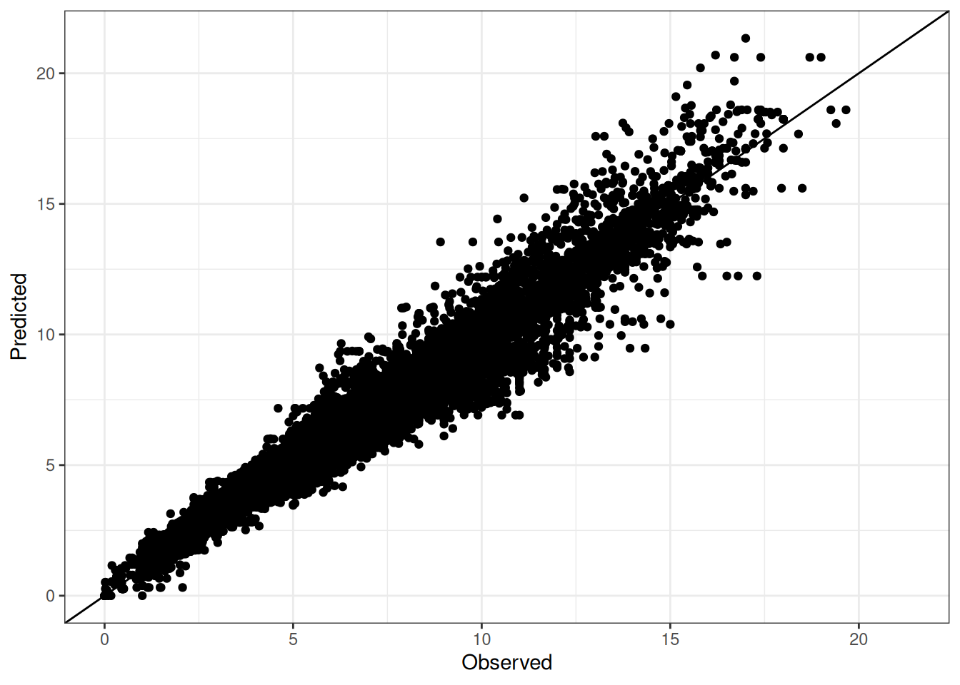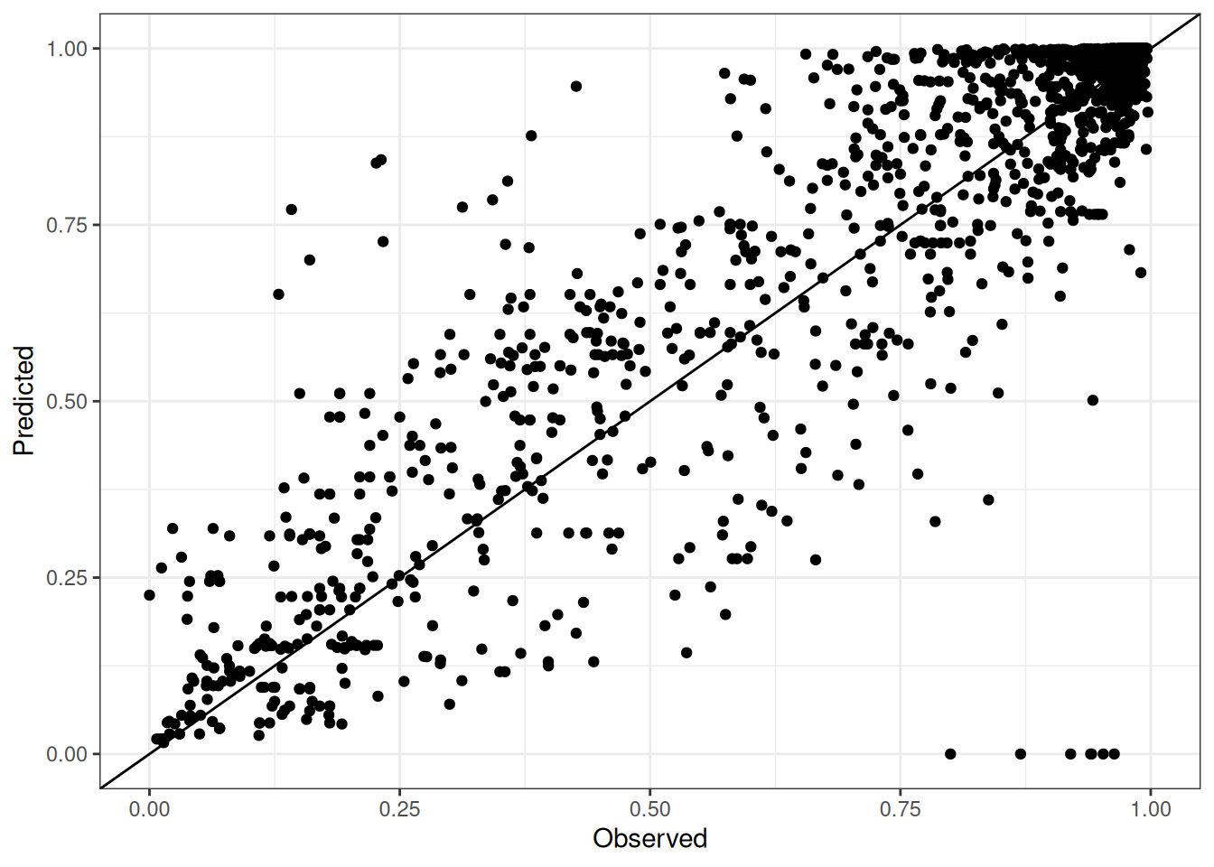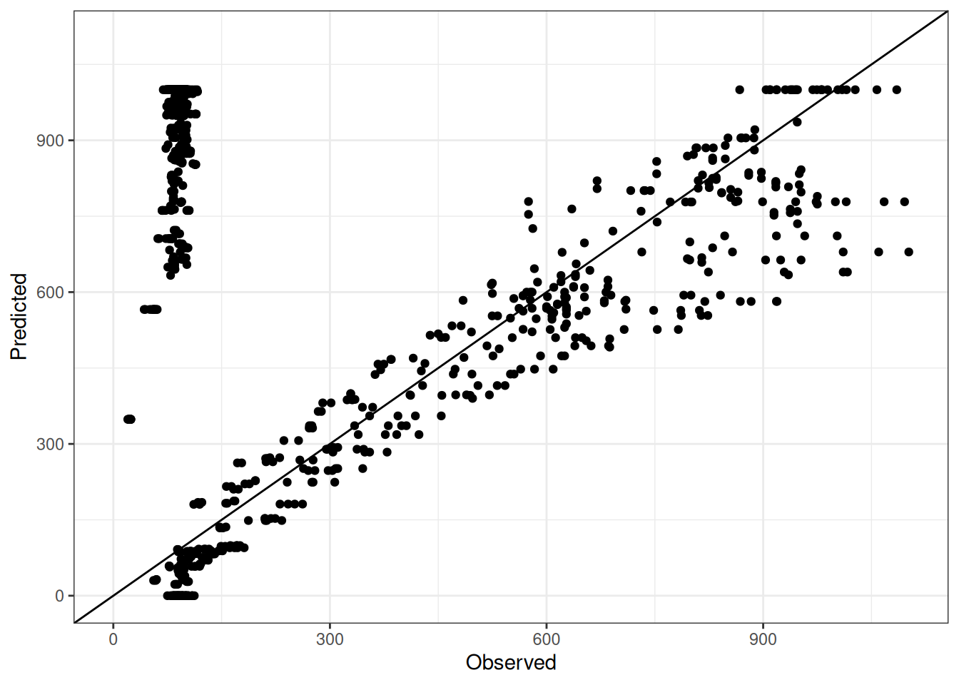 The range of observed and predicted values are estimated using data in this page, which may be misleading for the narrow ranges of observed and predicted values.