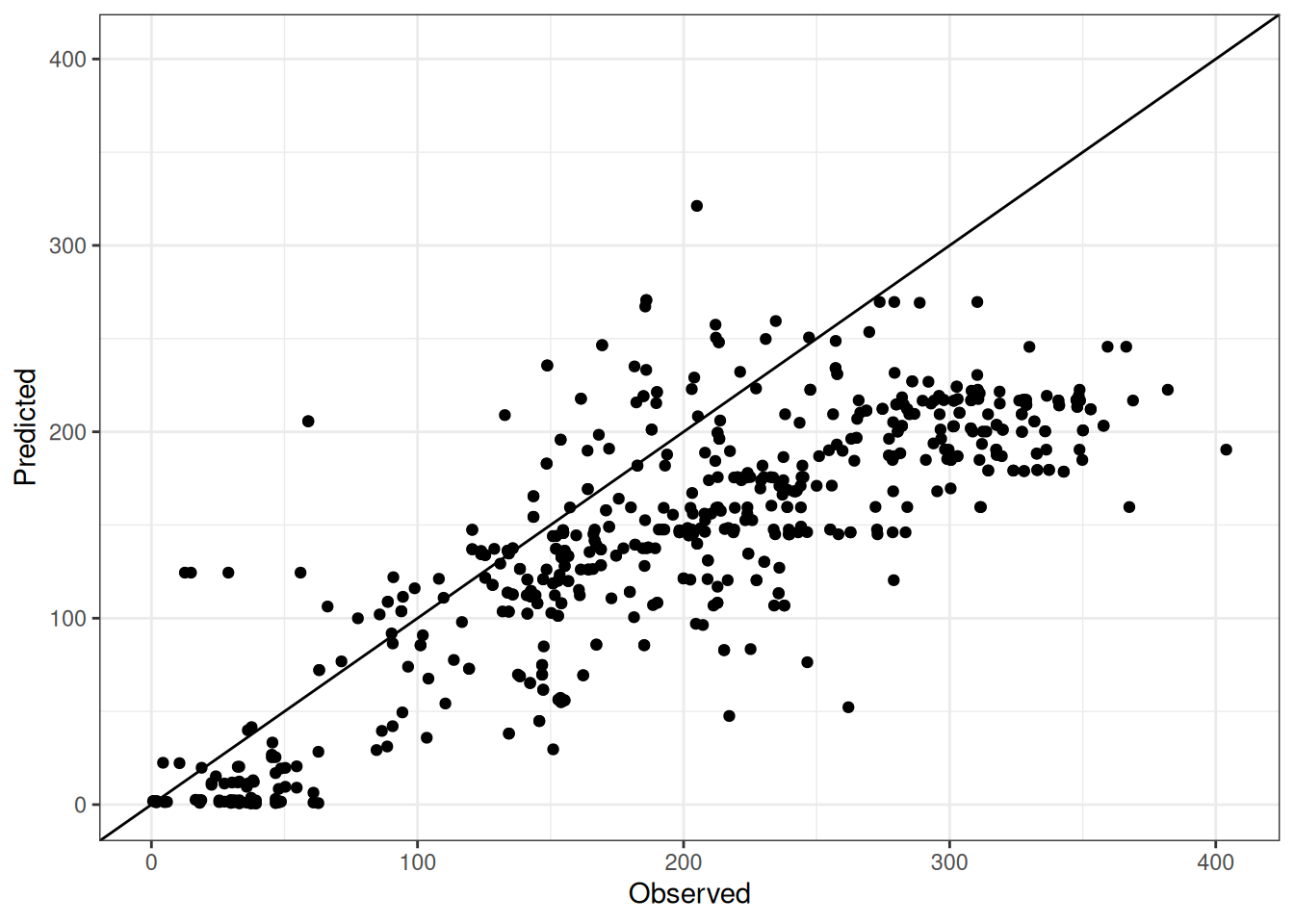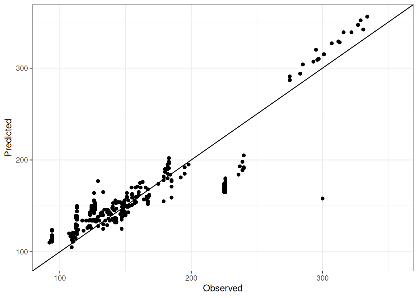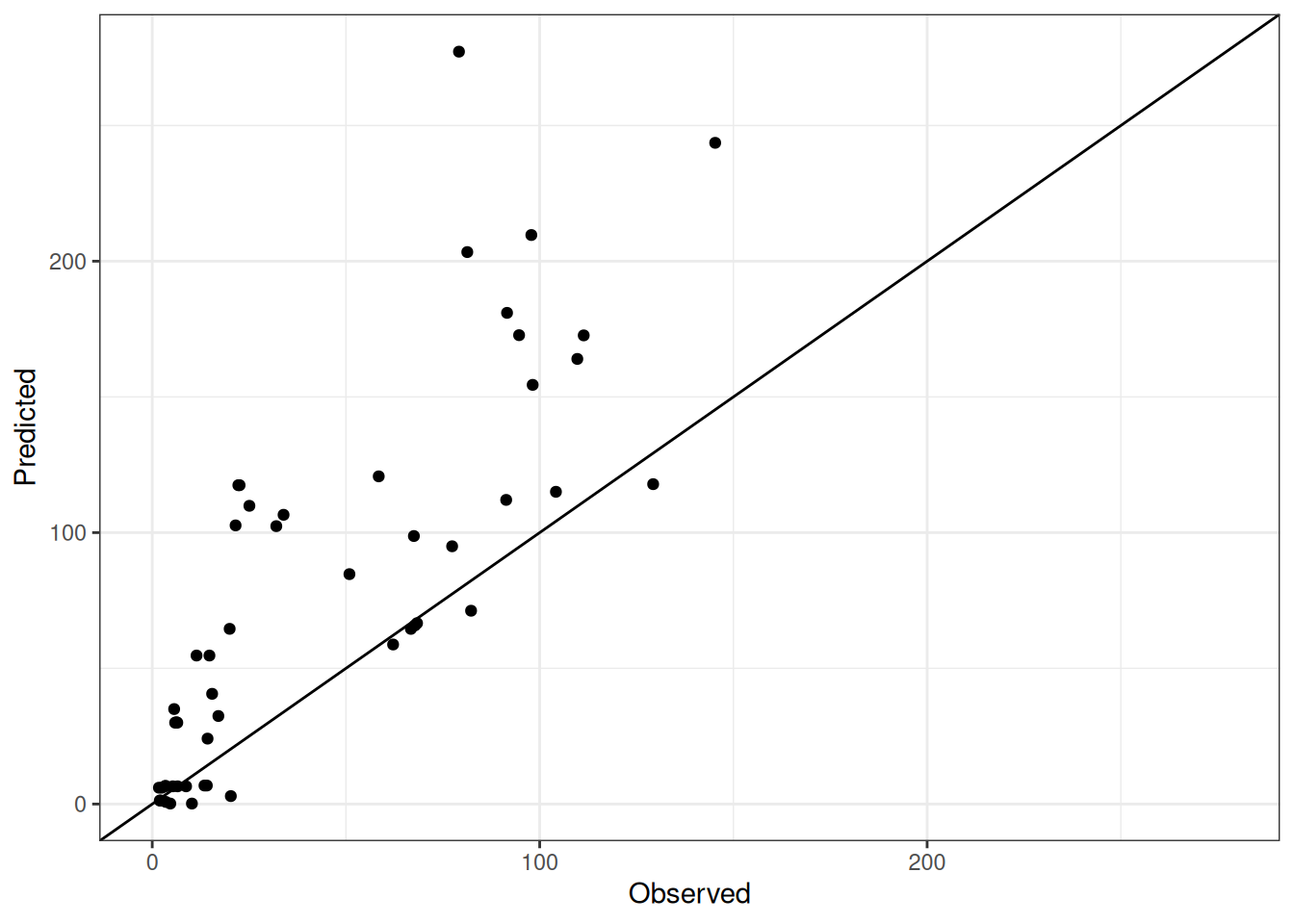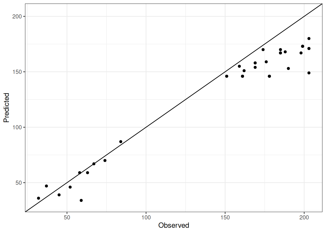 Comparison of observed and predicted values