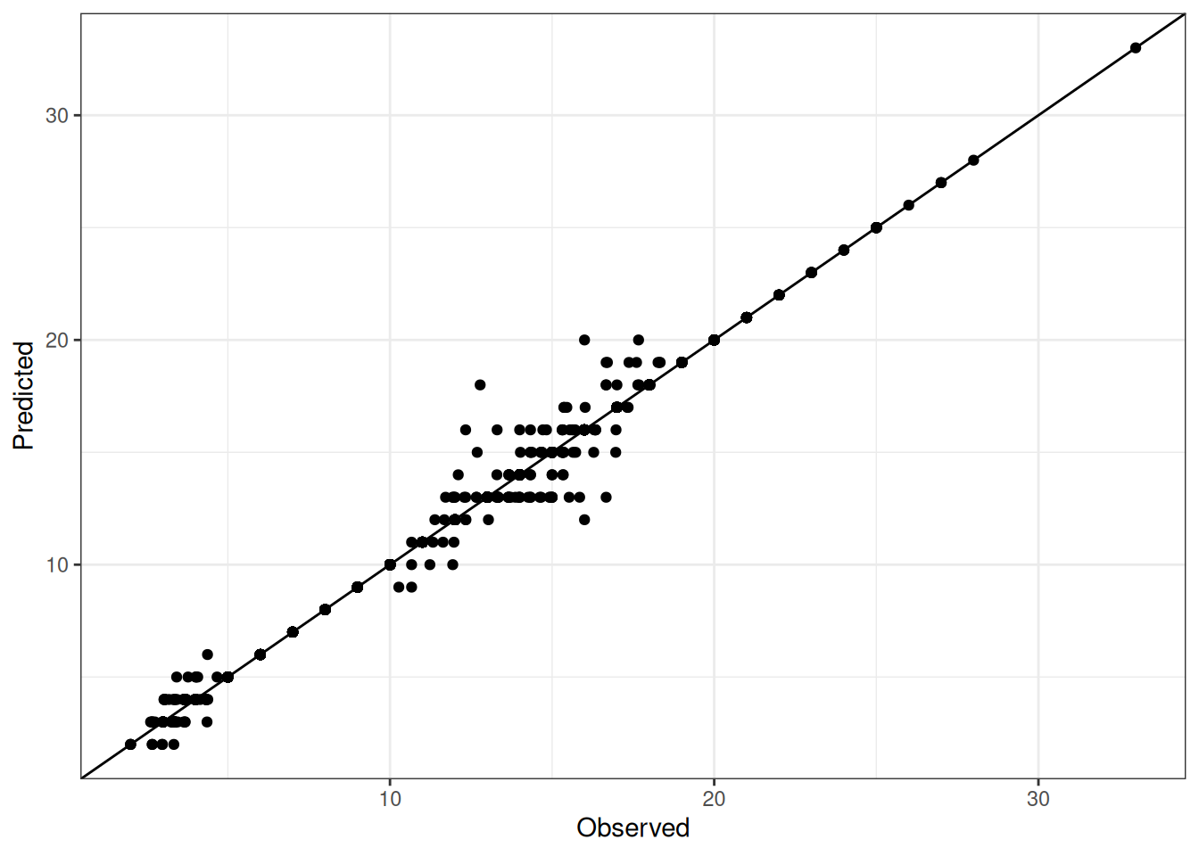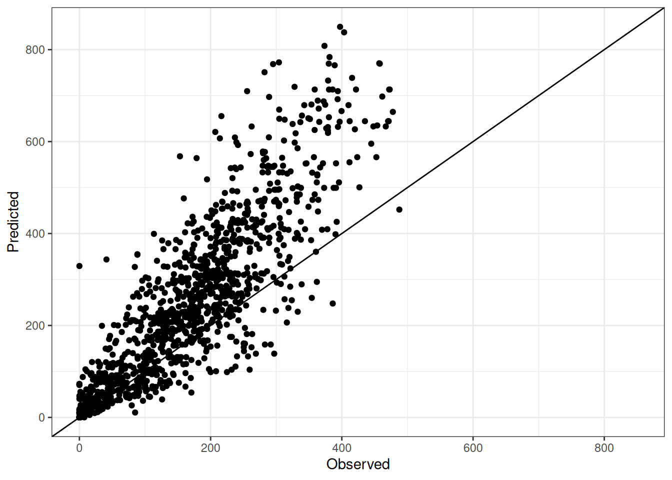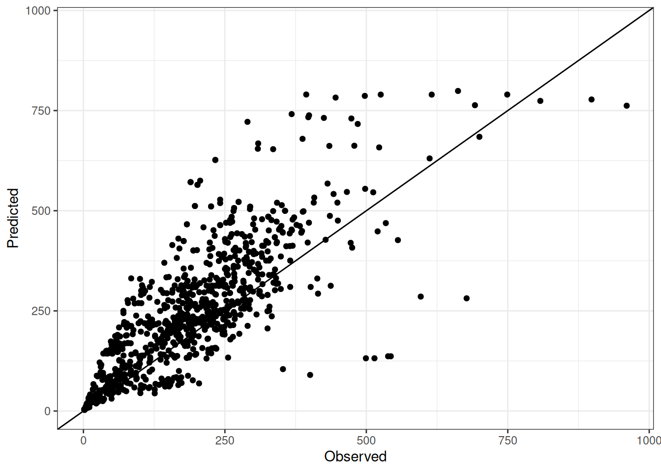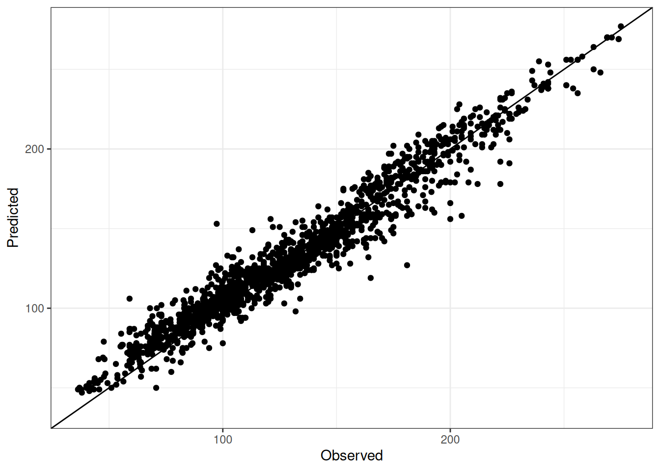 Comparison of observed and predicted values